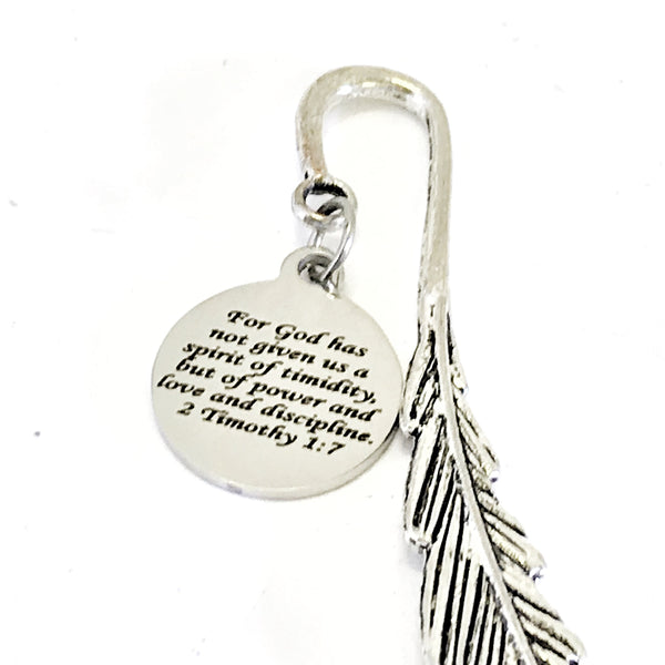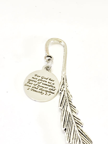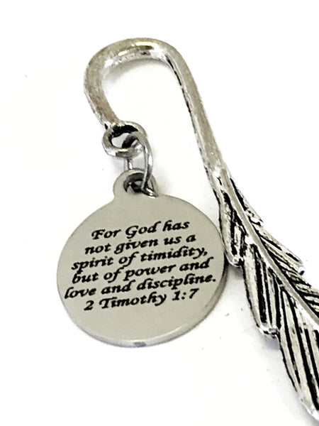 This bookmark would be a great gift to remind someone that God has given us a spirit of power and not timidity or fear. It has a stainless steel laser engraved charm with “For God has not given us a spirit of timidity, but of power and love and discipline” from 2 Timothy 1:7 from on it.