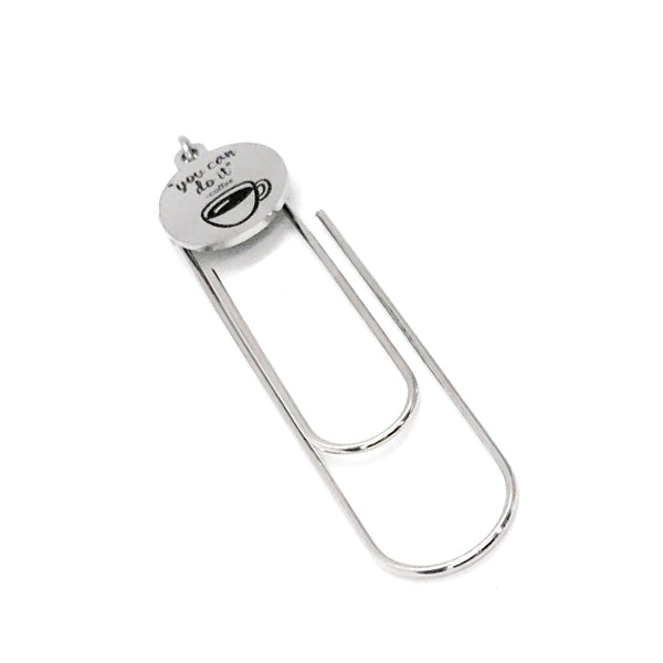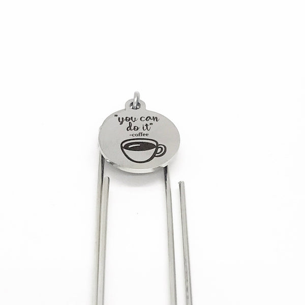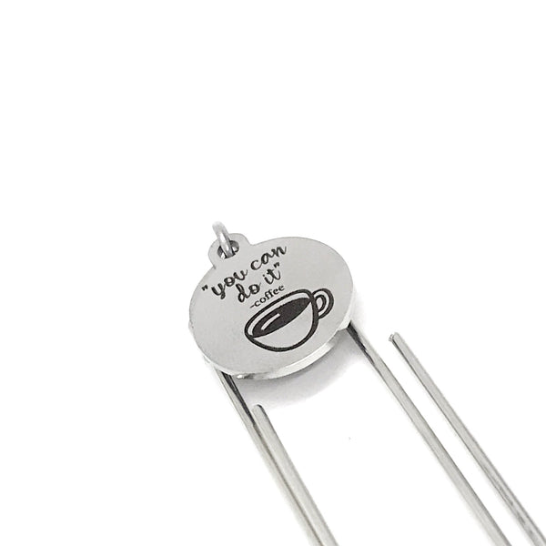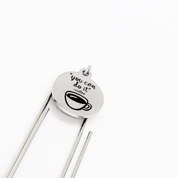 This bookmark has stainless steel laser engraved charm with “You can do it — Coffee” on it.