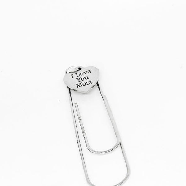 I Love You Most Heart Bookmark Stainless Steel Engraved Charm Romantic Gift Paperclip Bookmark
