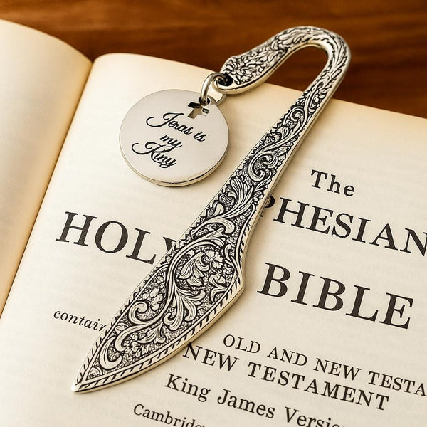 Elevate your reading time with this beautifully detailed faith-inspired bookmark from JKCE Designs. Crafted with an ornate silver design and paired with a 25mm stainless steel engraved charm that reads “Jesus is my King” in elegant Great Vibes font, this piece adds grace and devotion to every page. The charm features a cross cutout at the top where it connects to the 4.6-inch bookmark, symbolizing faith and inspiration. Perfect for Bible study, devotionals, or as a meaningful gift for someone special in your life.