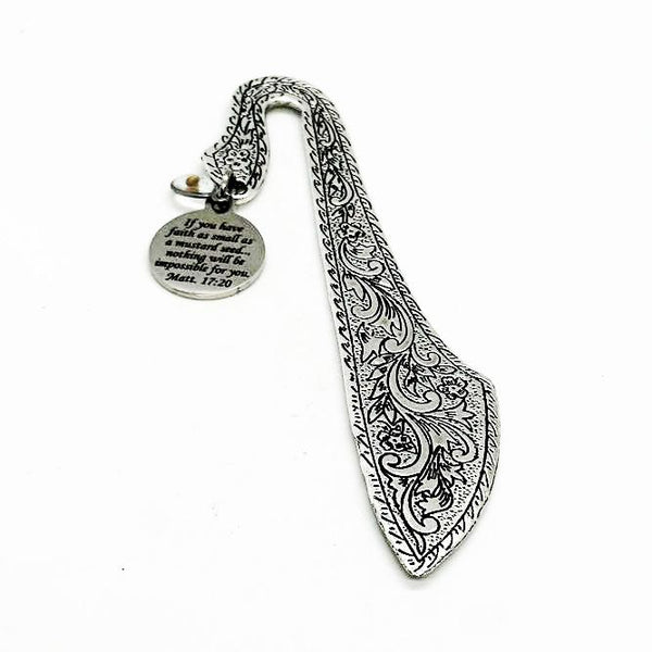 This Christian gift bookmark would be a great bible bookmark, reader gift, or planner bookmark for someone you love or for yourself. It has a charm with "If you have faith as small as a mustard seed... nothing will be impossible for you" from Matthew 17 20 on it. It also includes a small mustard seed charm in a teardrop shaped charm. The scripture charm measures approx. 3/4 inch across.