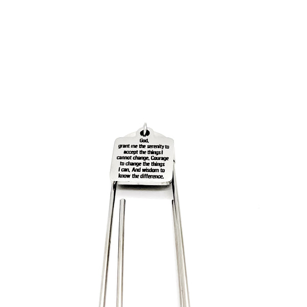 This bookmark has a stainless steel laser engraved charm with The Serenity Prayer on it.