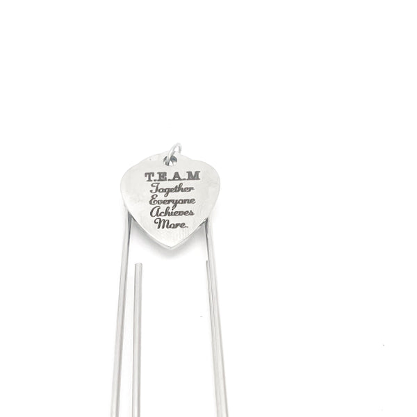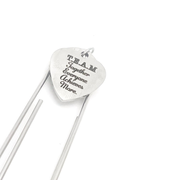 This bookmark has stainless steel laser engraved charm that says, “T.E.A.M. Together Everyone Achieves More” on it. This would be a great gift for a great team.