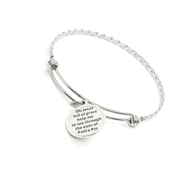 This is a beautiful stainless steel bracelet with a St. Pio of Pietrelcina charm on it. The charm measures approx. 3/4 inch across.