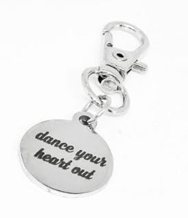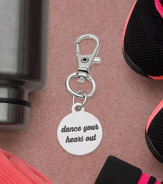 Celebrate your passion for movement with this stainless steel clip-on charm engraved with "Dance Your Heart Out." Measuring approximately 19mm, this round charm is perfect for dancers, fitness lovers, and anyone who finds joy in motion. Easily attach it to your dance bag, gym backpack, or water bottle for a touch of daily motivation. The durable stainless steel construction ensures it stays beautiful through every workout, routine, or rehearsal. A thoughtful gift for dancers, instructors, and fitness enthusiasts alike!