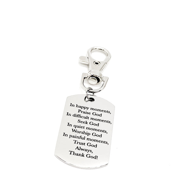 This is a great zipper pull or bag charm clip gift that would be a great charm gift. It would be a great charm to clip onto a tote, sports bag, book bag or keychain. It has a stainless steel laser engraved charm with the following on it: