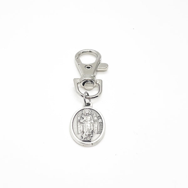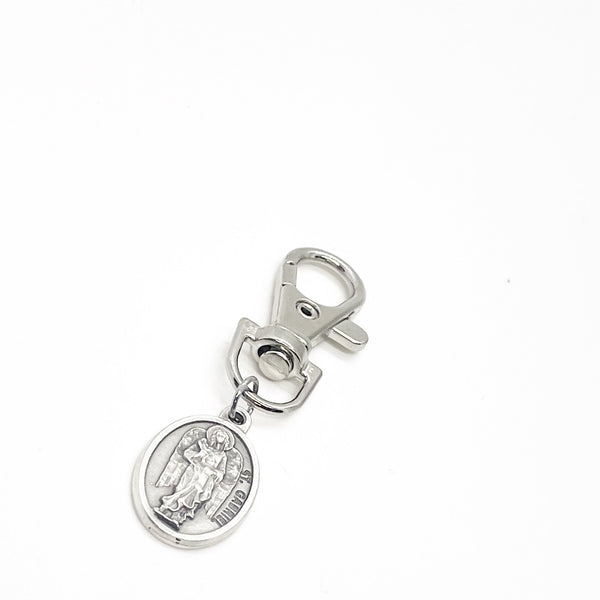 This is a great zipper pull or bag charm clip gift that would be a perfect gift for yourself or someone you love. It would also be a great charm to clip onto a tote, purse, sports bag, book bag or keychain. It has a silver-tone St. Gabriel charm. The charm measures approx. 1 inch tall.