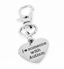 I Love Someone With Autism Stainless Steel Heart Engraved Clip On Charm Keychain Gift