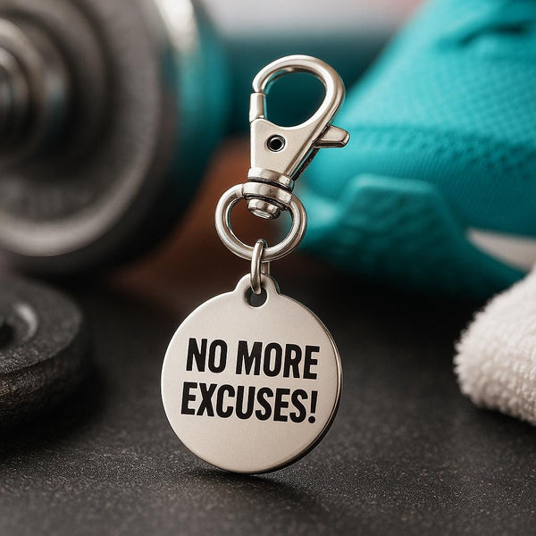 Engraved with the powerful phrase “No More Excuses!”, this durable stainless steel charm is a perfect daily reminder to push harder, stay disciplined, and never give up on your goals. Whether you clip it to your gym bag, keychain, planner, or backpack, it’s a subtle but strong statement of motivation and accountability.