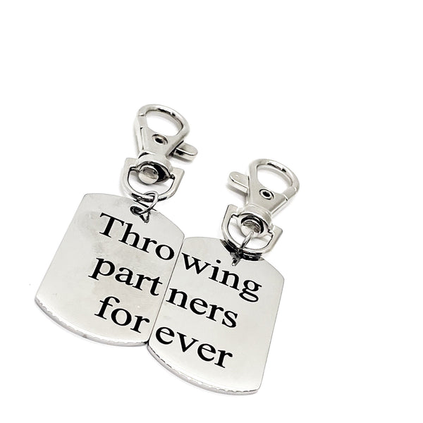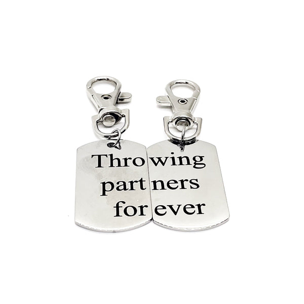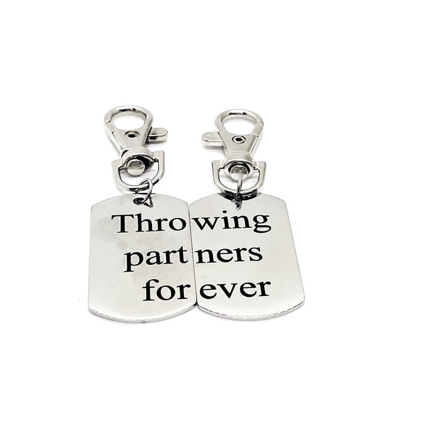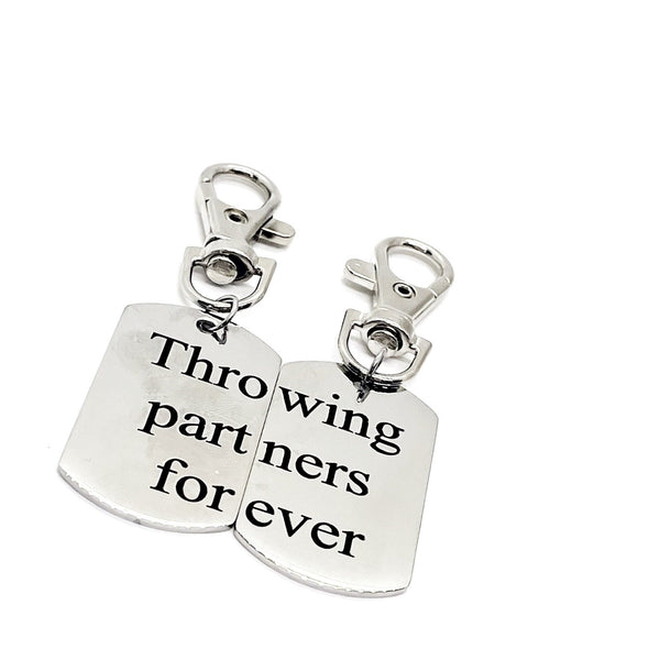 This is a set of two clip on charms that when put together say “Throwing Partners Forever”. It would be a great gift for baseball or softball players. They are great to clip on to Keychain, backpacks, or equipment bags.