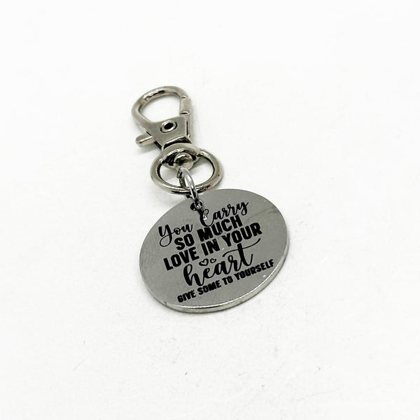 Love Yourself Clip On Charm, You Carry So Much Love In Your Heart, Key Chain Charm, Bag Charm, Motivational, Encouragement, Self Care Gift