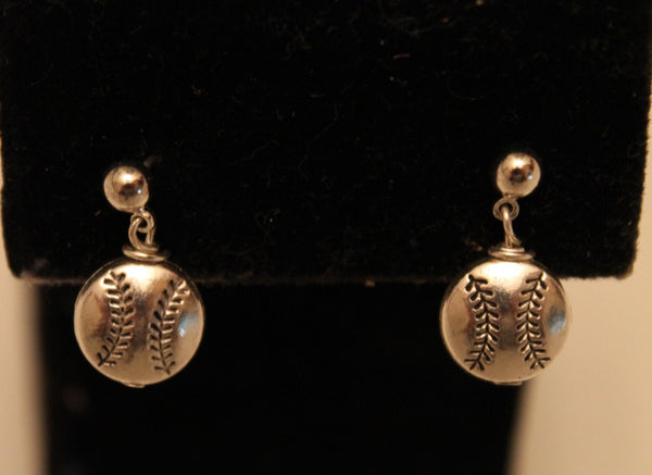This is a set of great silver tone baseball earrings - perfect to wear with your Baseball Mom bracelet and earrings! These earrings are on a post with a butterfly stopper back.