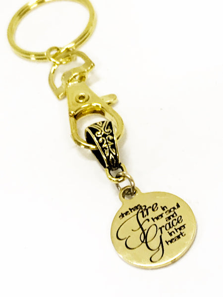 Christian Keychain, She Has Fire In Her Soul And Grace In Her Heart Keychain, Christian Charm Keychain, Christian Gift For Her
