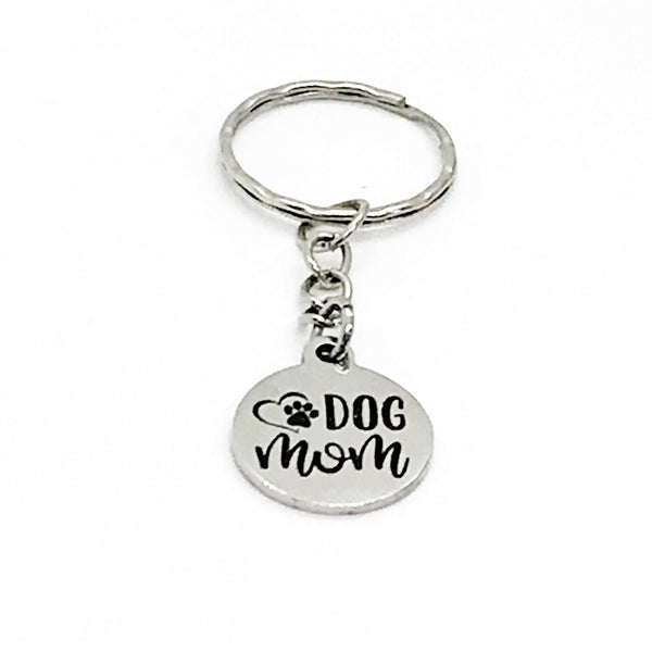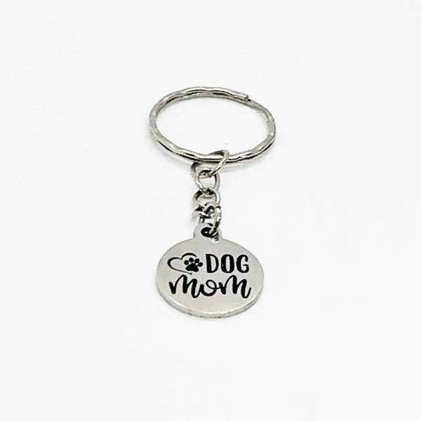 This is a great dog mom keychain gift. It has a stainless steel laser engraved charm that says, “Dog Mom”