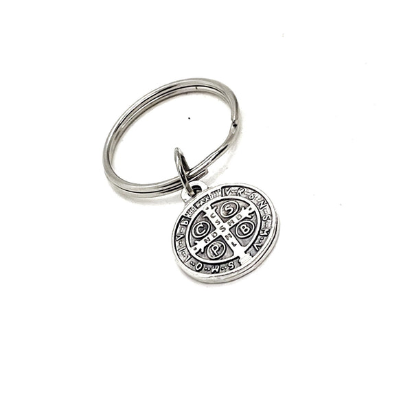 This is a wonderful keychain gift! It has a Saint Benedict charm on it. The charm measures approx. 1/2 inch tall.