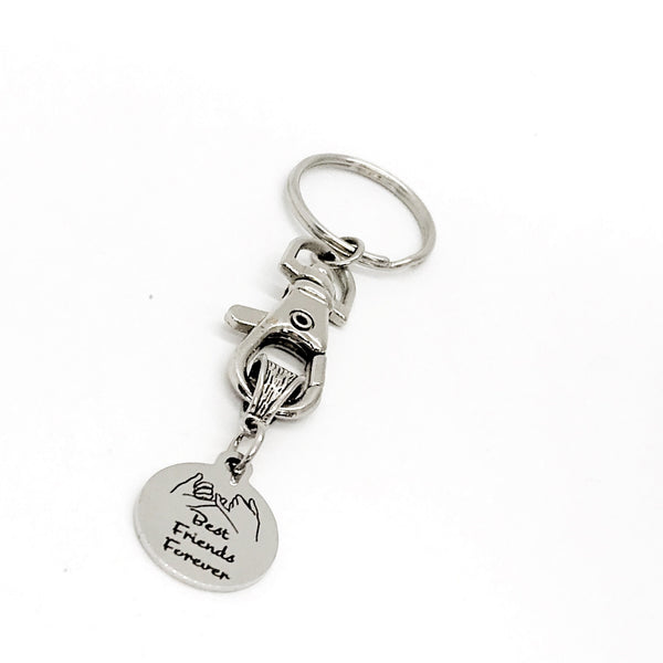 This keychain gift would make a great keychain gift. It has a stainless steel laser engraved charm with “Best Friends Forever” on it.
