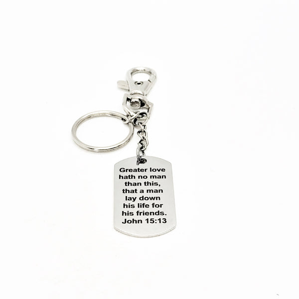 Greater Love Hath No Man John 15 13 Bible Verse Keychain Stainless Steel Gift
