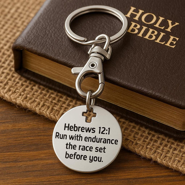 Hebrews 12 1 Endurance Scripture Keychain Christian Gift Runner Motivation Faith Accessory