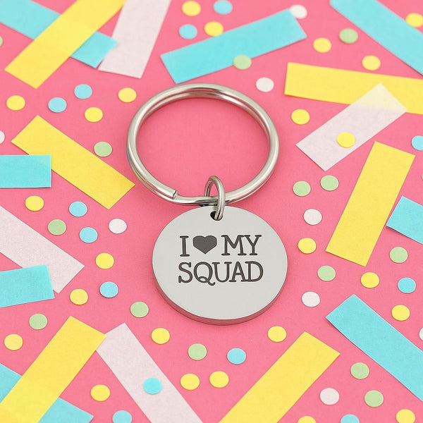 I Love My Squad Keychain Stainless Steel Round Charm 18mm Friendship Gift Team Spirit Accessory Group Gift For Best Friends