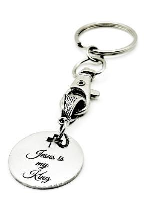 Show your faith with this elegant stainless steel keychain from JKCE Designs. The 25mm engraved charm reads “Jesus is my King” in a beautiful Great Vibes font and features a cross cutout at the top where the jump ring connects it to the keyring. Durable, polished, and full of meaning — this keychain makes a perfect daily reminder of devotion or a thoughtful gift for someone walking in faith. Ideal for church friends, prayer partners, or anyone proud to share their belief wherever they go.