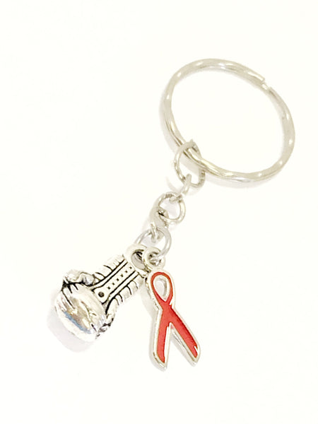 Knock Out ALS Keychain, ALS Supporter Gift, ALS Awareness Gift, Red Ribbon Awareness, Red Ribbon Keychain