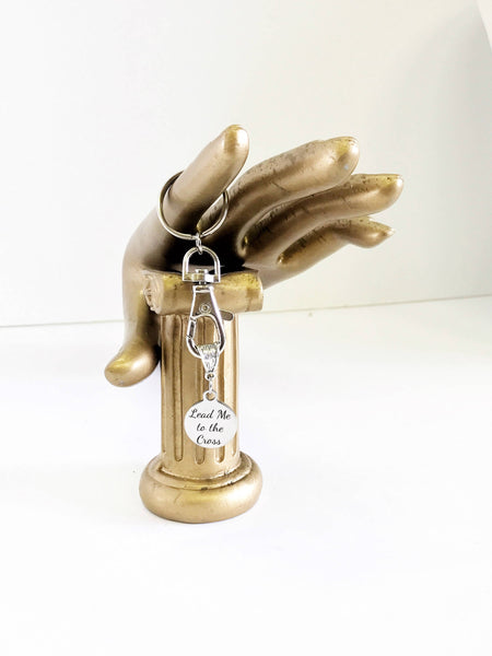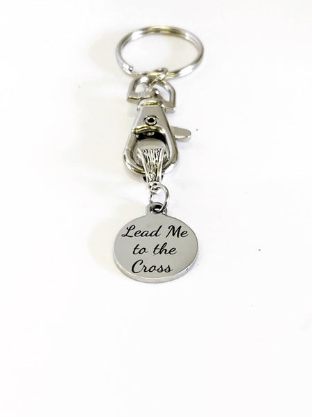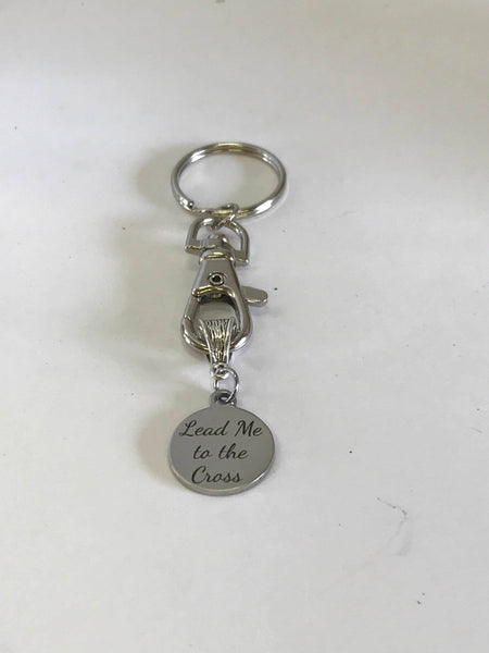 This keychain includes a stainless steel laser engraved charm with "Lead Me To The Cross" on it. Each keychain comes individually gift boxed.
