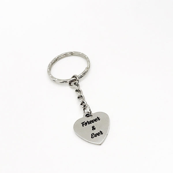 This is a great keychain gift with a stainless steel laser engraved charm with “Forever & Ever” on it.