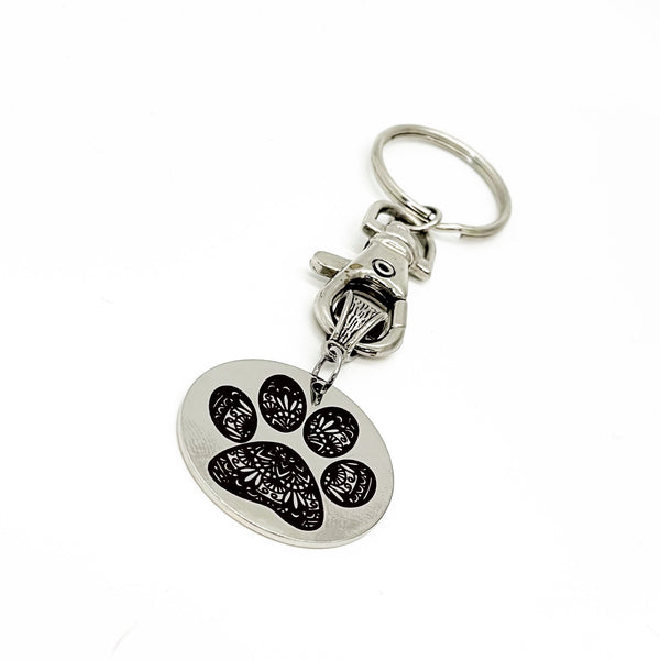 Mandala Paw Print Keychain, Mandala Charm, Cougar Paw Print, Cat Paw Print, Dog Paw Print, Keychain Gift, Mandala Keychain, Gift For Her