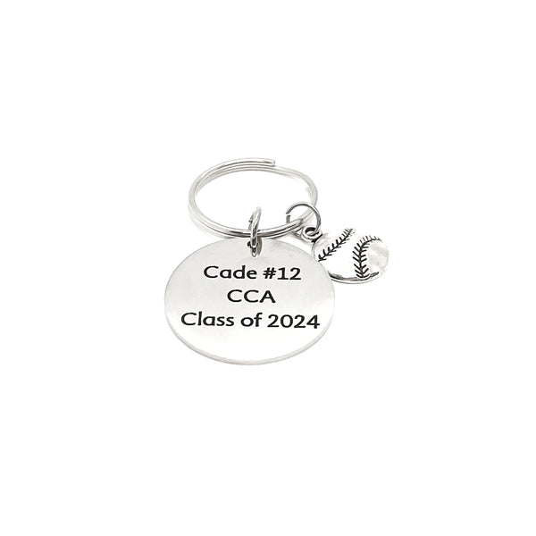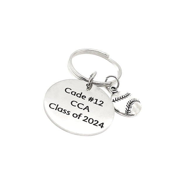This is a great keychain gift for your favorite softball player on your school team! It has a stainless steel laser engraved charm with first name jersey number, school and graduation year.