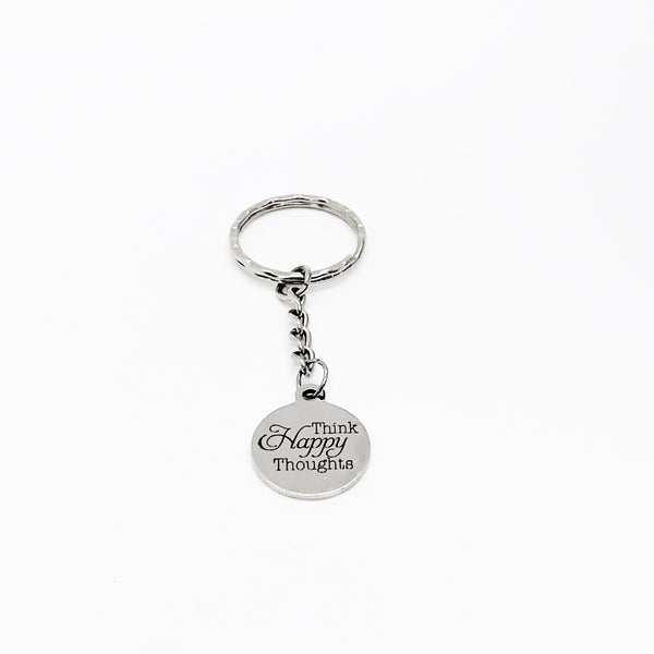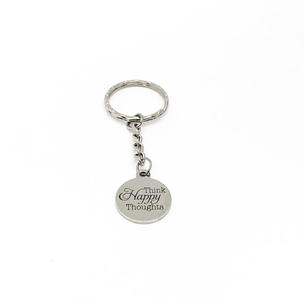 This is a great keychain gift with a stainless steel laser engraved charm with “Think Happy Thoughts” on it.