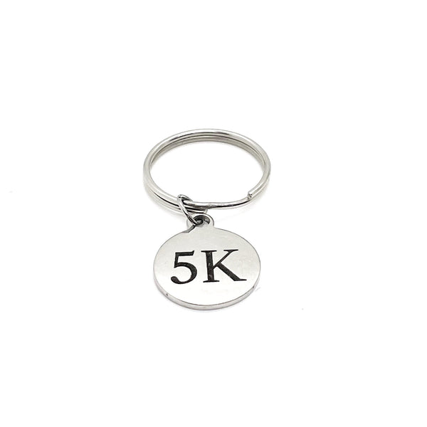 This is a wonderful keychain gift! It has stainless steel engraved charm with “5K” on it. The charm measures approx. 3/4 inch cross.