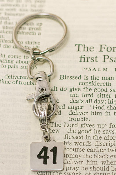 This elegant stainless steel keychain features a 19mm square charm engraved with the number 41. Durable and tarnish-resistant, it’s perfect for daily use and makes a thoughtful faith-inspired gift.