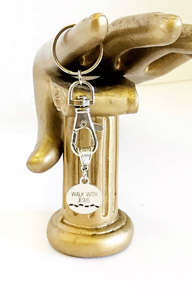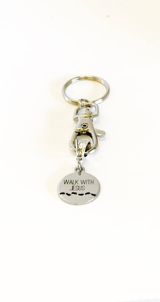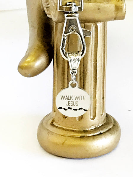 This keychain includes a stainless steel laser engraved heart charm with "Walk With Jesus" on it. This would be a great gift to someone at their Baptism or just as a reminder to always way the straight and narrow path with Jesus.