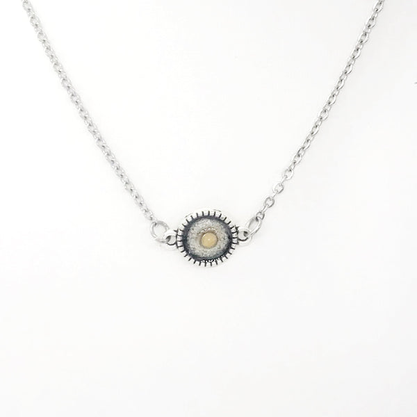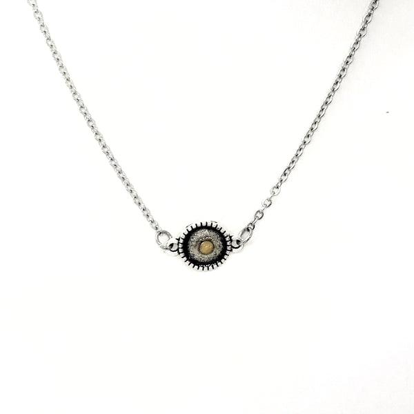 This is a beautiful mustard seed connector pendant on a stainless steel chain necklace in your choice of lengths. It would also be a beautiful inspirational gift for someone you love to remind them of the scripture of Matthew 17:20 that tells us that with just a small amount of faith, we can move mountains! The pendant is a silver-tone alloy on a stainless steel chain.