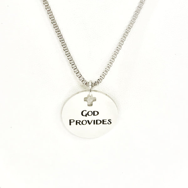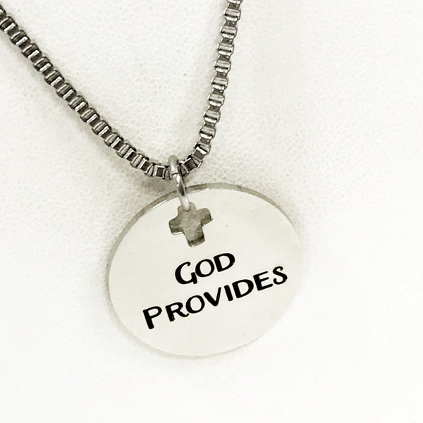 This is Christian gift necklace that would work well for men. This necklace comes with a stainless steel laser engraved charm pendant on a 22 inch stainless steel box chain. The pendant is also available for individual purchase if you have another chain on which you would like to wear it. The pendant has "God Provides" on it.