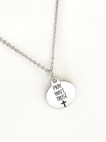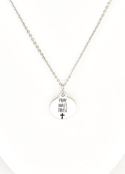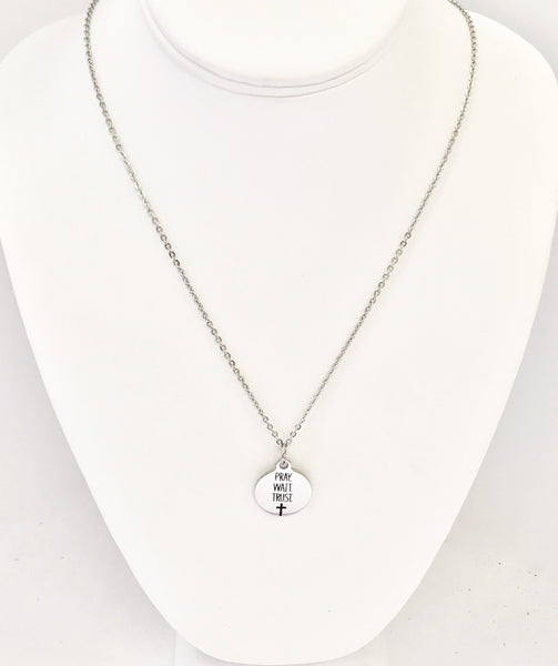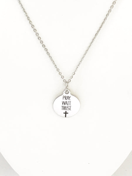 Christian Jewelry, Pray Wait Trust Necklace, Christian Necklace, Scripture Jewelry, Christian Gift, Religious Jewelry, Cross Pendant Gift