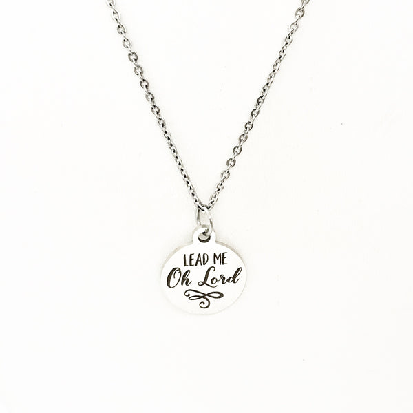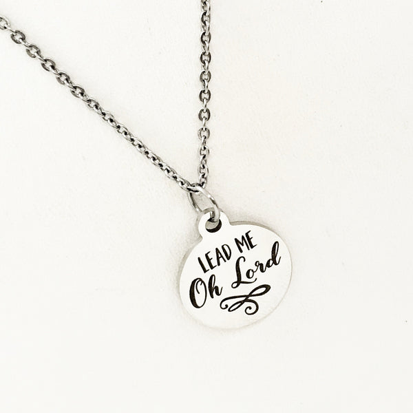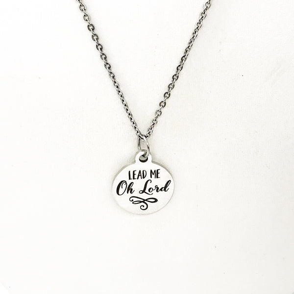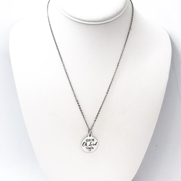 This is a stainless steel laser engraved pendant on a stainless steel chain. The pendant has "Lead me O Lord" on it. This pendant is available on your choice of 16, 18, 20, 22, 24, 26, 28 or 30 inch chain. The pendant is also available for individual purchase if you have another chain on which you would like to wear it.