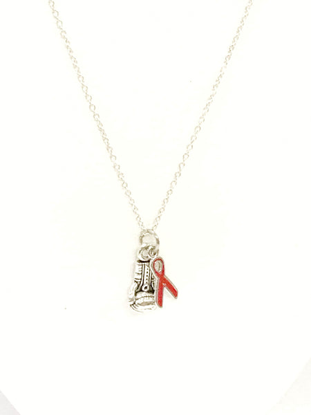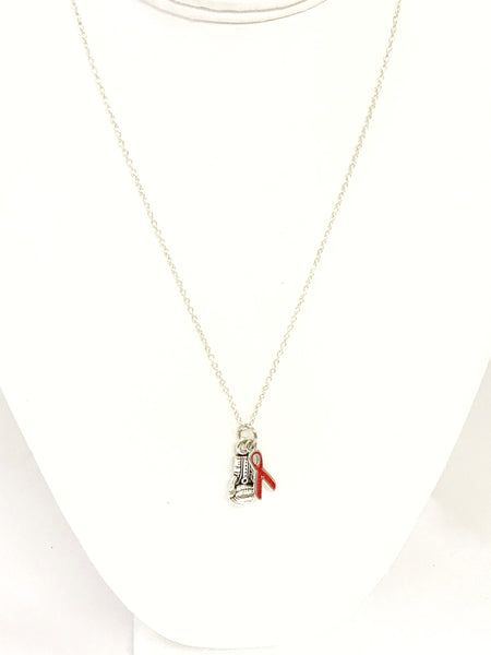 Knock Out ALS Necklace, Fighting ALS Necklace, Red Ribbon Necklace, Red Ribbon Jewelry, Red Ribbon Gift, ALS Supporter Gift, Diagnosis Gift