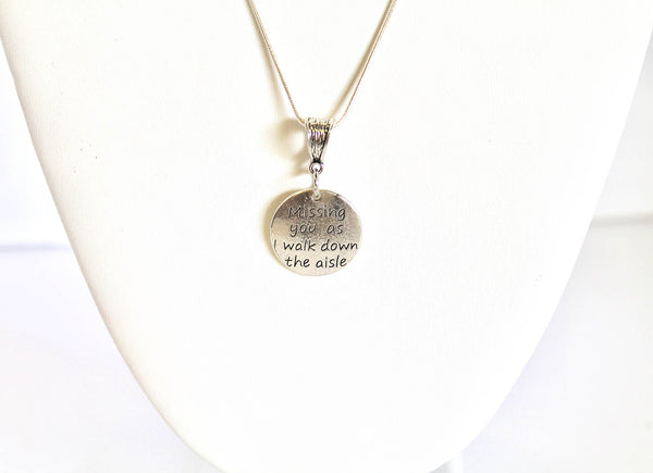 Missing You As I Walk Down the Aisle Pendant on Silver Necklace, Wedding Jewelry, Wedding Father Remembrance, Mother Remembrance