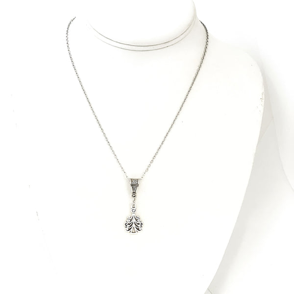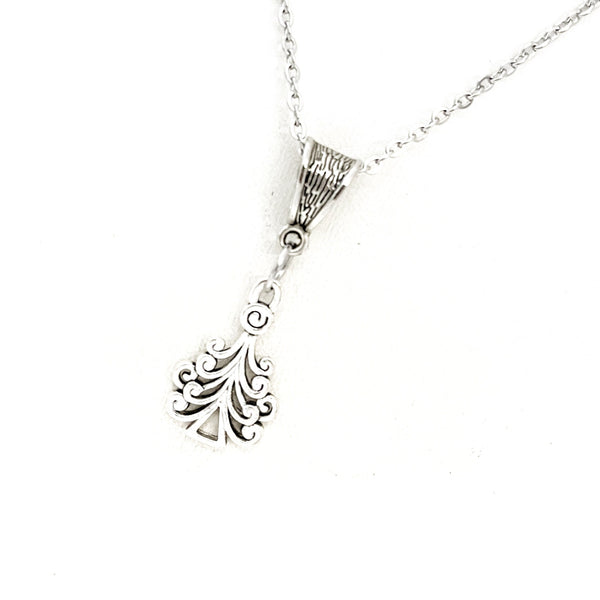 This beautiful necklace is a stainless steel chain with a silvertone bale and Christmas tree pendant.