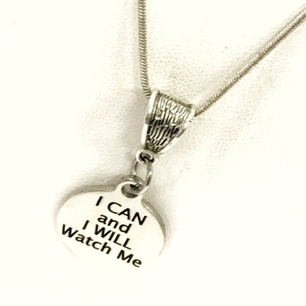 This is a beautiful necklace that would make a wonderful motivation gift. It has “I Can and I Will Watch Me” on it.
