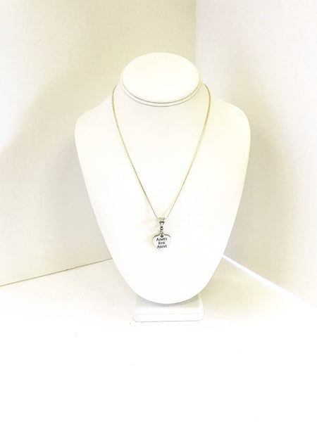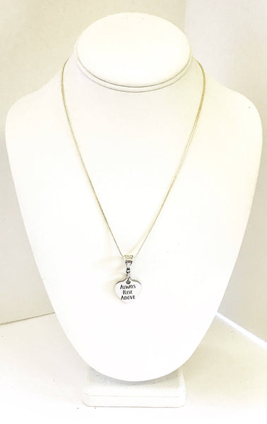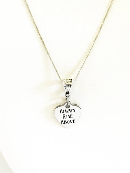 Do you need motivational jewelry gifts? This is a stainless steel laser engraved pendant on a sterling silver plated chain. The pendant has "Always Rise Above" on it. This pendant is available on your choice of 16, 18, 20, 22, 24, 26, 28 or 30 inch chain. The pendant is also available for individual purchase if you have another chain on which you would like to wear it.