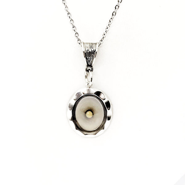 The pendant measures 18mm by 13mm and comes on a stainless steel link chain. This pendant is available on your choice of 16, 18, 20, 22, 24, 26, 28 or 30 inch chain. The pendant is also available for individual purchase if you have another chain on which you would like to wear it.