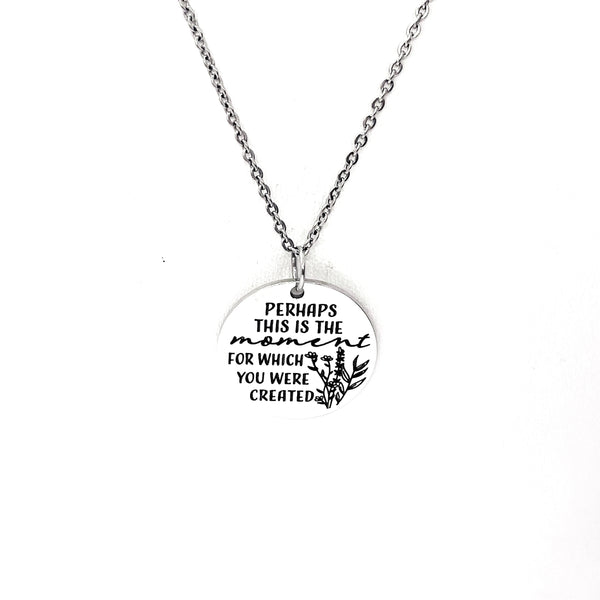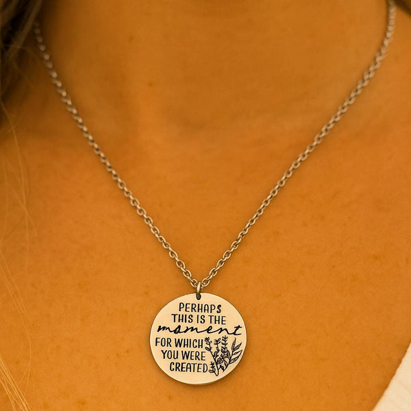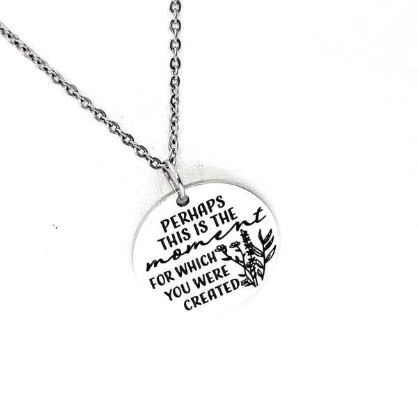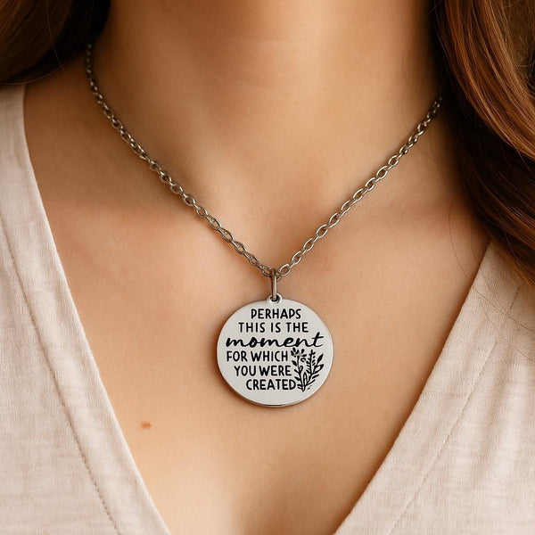 Find strength and purpose with this inspiring Perhaps This Is The Moment For Which You Were Created necklace from JKCE Designs. Inspired by Esther 4:14, this elegant stainless steel necklace serves as a beautiful daily reminder of faith, courage, and divine timing.