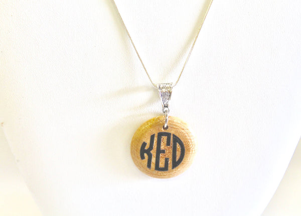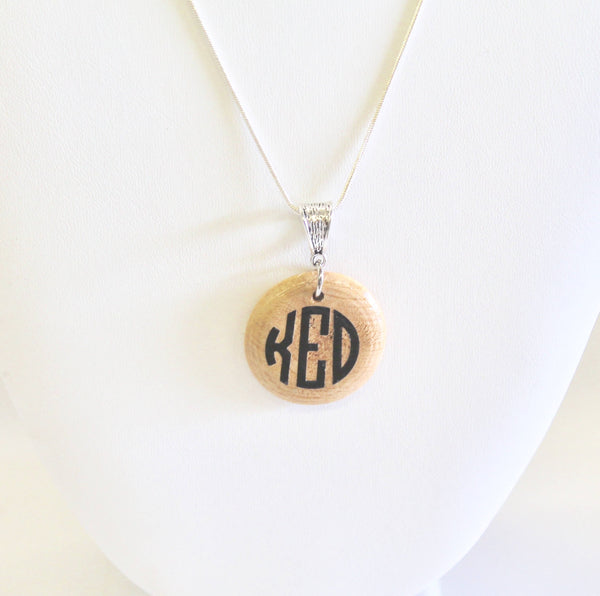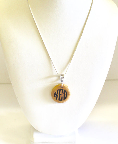 This is a beautiful monogrammed wood pendant necklace. It would be a beautiful personalized gift for any woman in your life. It is available in a variety of lengths and comes on a sterling silver plated snake chain. The monogram letters are made via a transfer process and set with diamond glaze. At checkout, please let me know which letters you request in this format: