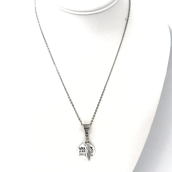 This necklace is a stainless pendant on a stainless steel link chain with a silvertone bale. This pendant measures approx. 3/4 inch and is available on your choice of 16, 18, 20, 22, 24, 26, 28 or 30 inch chain. The pendant is also available for individual purchase if you have another chain on which you would like to wear it.