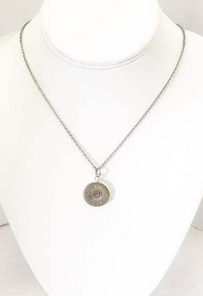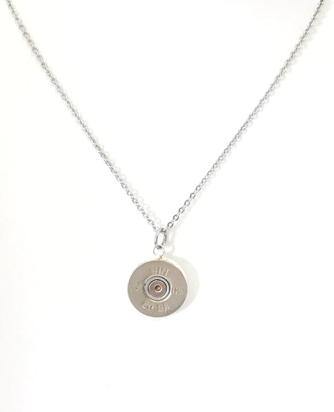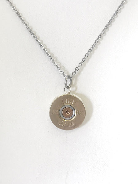 This is a simple but classic 20 gauge shotgun shell pendant necklace. This pendant is available on your choice of 16, 18, 20, 22, 24, 26, 28 or 30 inch chain. The pendant is also available for individual purchase if you have another chain on which you would like to wear it.