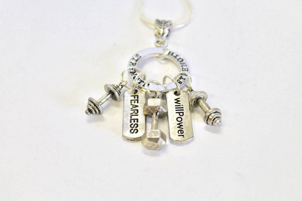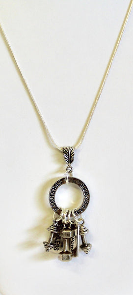 Unique necklace to express your love of exercise and weightlifting! Would make a great gift for a strong woman or for yourself! This would also make a great gift for someone that loves working out! This necklace is available in your choice of lengths. The pendant is also available for individual purchase if you have another chain on which you would like to wear it.