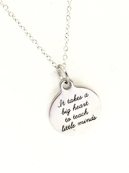 Teacher Gift, Teacher Necklace, Teacher Jewelry, Back To School Gift, It Takes A Big Heart To Teach Little Minds, Back To School Gift
